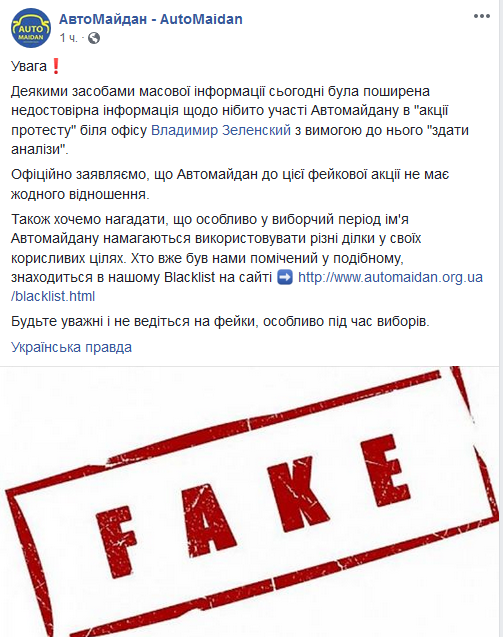 День другий. Залишилось 10 днів ) UPD: Цікаві подробиці — «Під офіс Зеленського приїхав нібито Автомайдан: хоче аналізів» https://www.pravda.com.ua/news/2019/04/10/7211848/