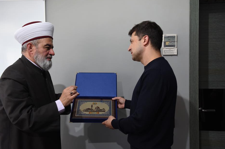 Сьогодні новообраний президент Володимир Зеленський провів зустріч із духовними лідерами мусульман України. На зустрічі були присутні: шейх Ахмед Тамім голова Духовного управління мусульман України, муфтій України, Айдер Рустемов — муфтій Духовного управління мусульман Криму, шейх Саід Ісмагілов — муфтій Духовного управління мусульман України «Умма». Зазначимо, що наразі в Україні проживає близько 2 мільйонів мусульман.