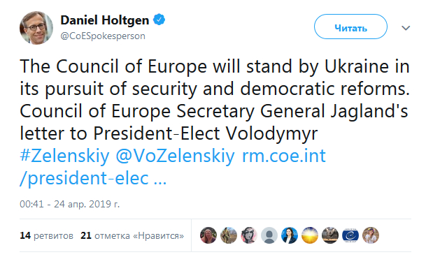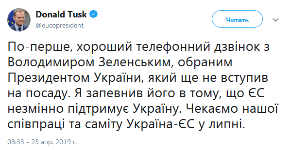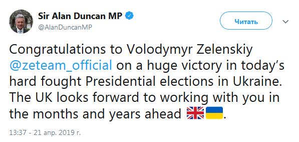 Така щира підтримка свідчить про те, що Захід вже готовий співпрацювати з Володимиром Зеленським, незважаючи на те, що офіційних результатів виборів ще не оголошено. Західні дипломати висловлюють всебічну підтримку Володимиру та повагу до вибору українців. Тож це лише початок, друзі. Ми обрали курс на Європу і вже його дотримуємося. Вперед до змін!