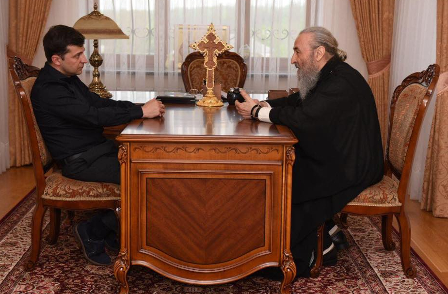 Володимир Зеленський провів зустріч із Главою УПЦ МП митрополитом Онуфрієм. Митрополит же висловив вітання з обранням на відповідальну й почесну посаду, побажав Божої допомоги, наснаги та терпіння. Під час зустрічі були обговорені питання розвитку загальнолюдських цінностей, окремо зосередили увагу на ситуації на Сході. Володимир Зеленський та митрополит Онуфрій наголосили на тому, що держава та Церква мають докласти максимум зусиль для налагодження миру та відновлення єдності України.