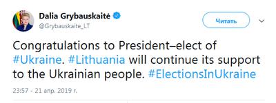 Congratulations to President–elect of #Ukraine. #Lithuania will continue its support to the Ukrainian people. #ElectionsInUkraine