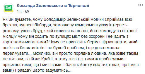 Дорогие друзья. На этой странице мы будем размещать разоблачение фейков о Владимире Зеленском и Зе!Команде. Мы будем информировать Вас о очередных фейках и грязных трюках наших оппонентов. Команда Зеленского никогда не опустится до их уровня! Вы заслуживаете на честных политиков!