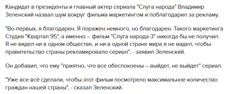 Посмотреть интервью можно на страничке 1+1 видео - https://1plus1.ua/1plus1video/novosti-tsn/kiev-zelenskij-prokomentuvav-jmovirnu-zaboronu-serialu-sluga-narodu-3