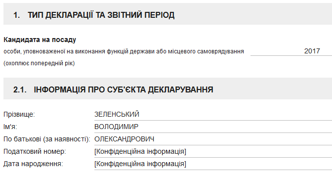 Декларация Владимира Зеленского опубликована на сайте НАЗК