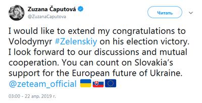 I would like to extend my congratulations to Volodymyr #Zelenskiy on his election victory. I look forward to our discussions and mutual cooperation. You can count on Slovakia’s support for the European future of Ukraine. @zeteam_official 🇺🇦🇸🇰🇪🇺
